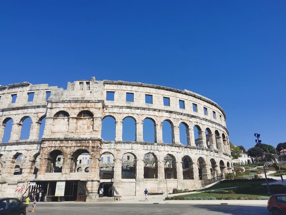 Pula est une ville située dans le sud de la péninsule istrienne, en Croatie. Elle est connue pour ses vestiges romains bien conservés, notamment l’amphithéâtre de Pula, qui est l’un des plus grands et des mieux conservés de l’Antiquité. L’amphithéâtre, également connu sous le nom d’Arène de Pula, a été construit au 1er siècle après JC et pouvait accueillir environ 20 000 personnes.
