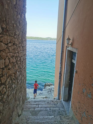 Le village est joli, typique d’un village du sud avec ses ruelles étroites. Il y a un petit marché dans la partie basse de la ville (avec quelques attrape-touristes il faut bien le dire). Nous nous promenons à Rovinj une petite heure avant d’aller rejoindre le parc Zlatni pour faire notre pique-nique et opter pour une baignade.
