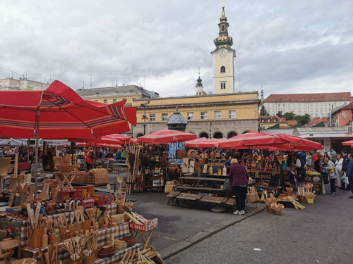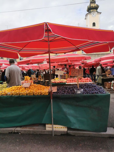 Si vous aimez les marchés animés, faites un tour au marché de Zagreb avec ses jolis parasols rouge!